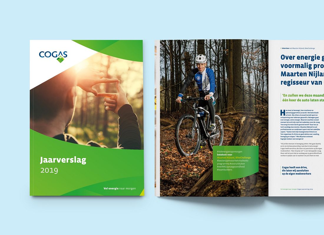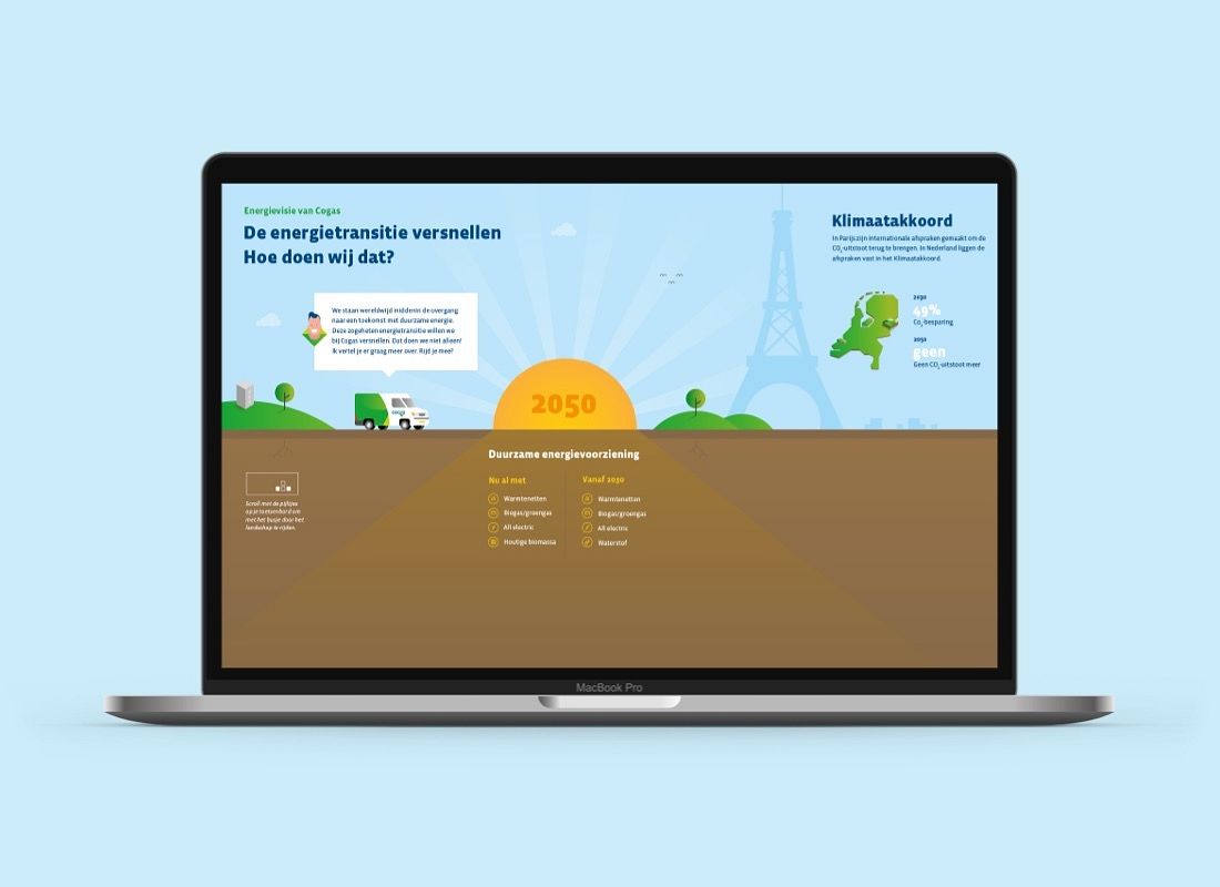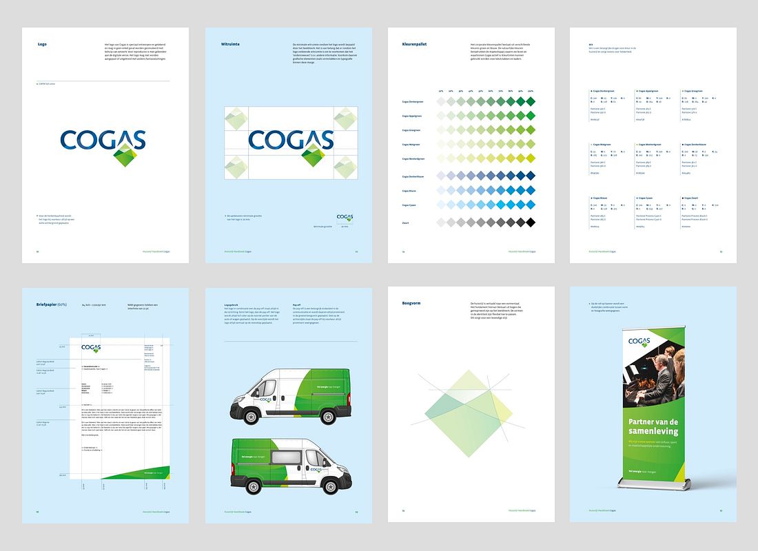 Een 140 pagina’s dik document. Waarin we echt álles vastleggen van de energietransitie, werken bij en Cogas corporate. We ontwikkelden namelijk een eigen stijl voor elke pijler.