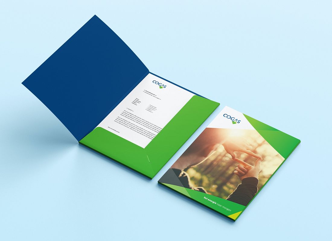 We vertaalden de huisstijl door in de offline middelen, waaronder deze offertemap. Een offertemap in stijl. Precies zoals het hoort!
