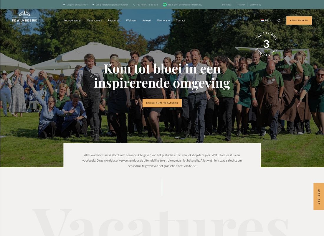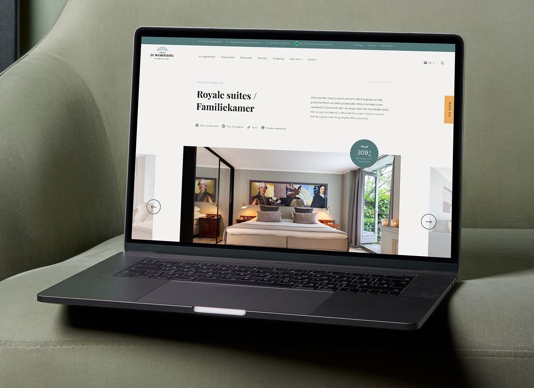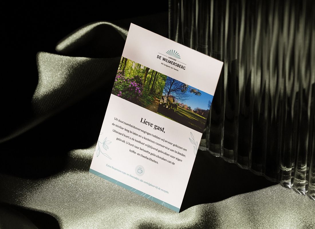 Dit vakantiegevoel online overbrengen, dát was het doel. Daarom zijn we gestart met een kleine re-branding voor De Wilmersberg, waarbij we het huidige logo (grotendeels) in takt lieten. Van een nieuwe website tot menukaartjes en van deurhangers tot kofferlabels. Het ging allemaal op de kop! Het resultaat? Een nieuwe stijl én nieuwe middelen waar de visie en missie perfect samenkomen. Warm, vriendelijk en uniek. Kijk je mee?