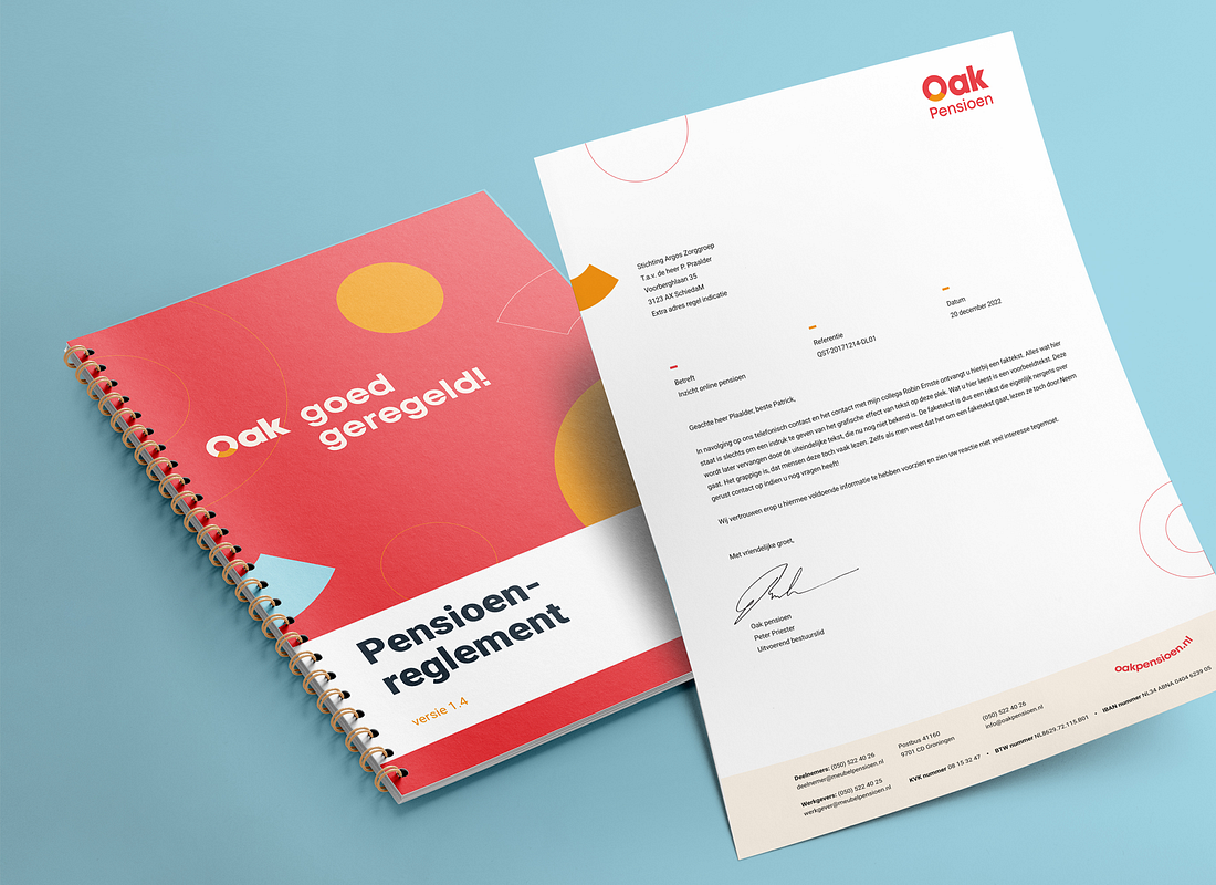 Een heldere boodschap in een aangename huisstijl. Dát is de nieuwe identiteit van Oak Pensioen. We brengen een verhaal over dat geen vragen oproept, maar duidelijk en helder is. Zonder poespas. Dat is wat Oak Pensioen is en uitstraalt. Hiermee is het doel dat Oak Pensioen nieuwe deelnemers aantrekt en hun verhaal op een betrouwbare en duidelijke manier overbrengt. Ben je benieuwd welke middelen wij voor hen hebben gecreëerd? Kijk mee!