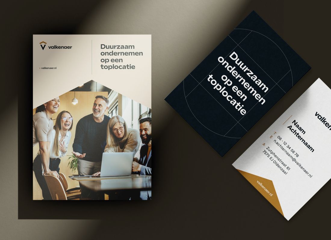 Een authentiek en duurzaam gebouw op een prachtige locatie vraagt niet om een simpele stijl. Het vraagt om een frisse, professionele en eigentijdse huisstijl. Belangrijke kenmerken waar wij mee aan de slag zijn gaan. We ontwikkelden een uniek logo, waarin de kernwaarden van Valkenaer worden vertaald naar een krachtig symbool. Het logo straalt herkenbaarheid en vertrouwen uit. Hierna volgt al snel een complete styleguide waarin het kleurpalet, de typografie en de richtlijnen voor het gebruik van de huisstijl duidelijk worden. Alle communicatie-uitingen kunnen op basis hiervan consistent worden uitgewerkt. De nieuwe huisstijl staat op papier. Nu kunnen de fysieke middelen, zoals flyers, visitekaartjes en fietsmanden uitgerold worden. Benieuwd hoe deze eruit zien? Lees verder!