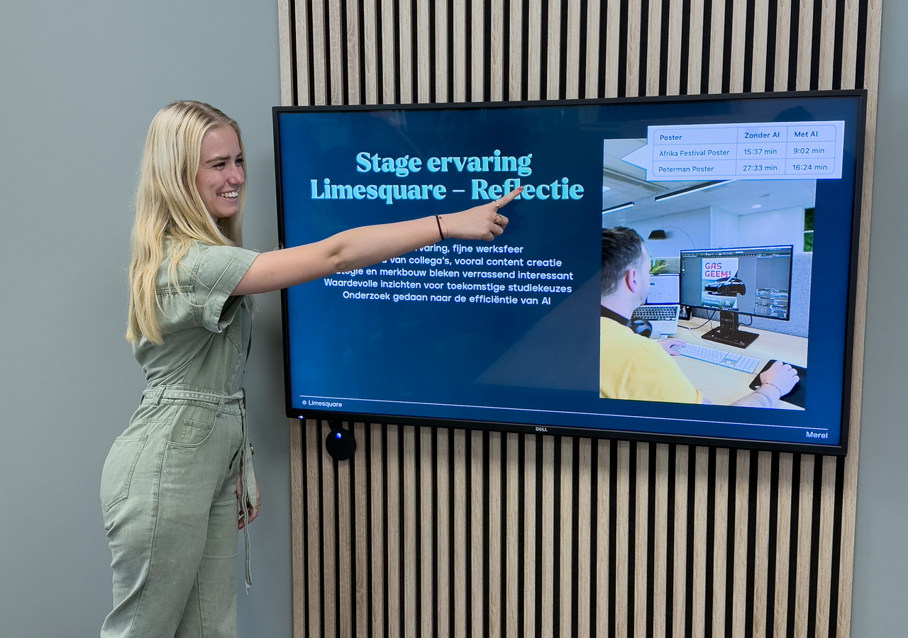 "Toen ik begon aan mijn afstudeerstage bij Limesquare, wist ik dat ik terecht zou komen bij een creatief bureau", vertelt Tessa. '"Wat ik nog niet wist, was hoe ontzettend gastvrij, betrokken en gezellig het team zou zijn. Wat deze stage voor mij echt bijzonder maakte, is het team zelf. Bij Limesquare is niemand zomaar 'een collega'. Er wordt oprecht naar elkaar geluisterd, successen worden samen gevierd en er wordt vooral veel gelachen.