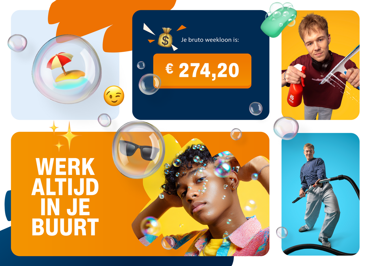 In de visuele uitingen kozen we voor frisse Asito kleuren en speelse zeepbellen. Deze geven de campagne een jonge, luchtige uitstraling. Ze zijn glanzend, vluchtig en perfect om spaardoelen in te ‘vangen’ in de vorm van herkenbare emoji’s.