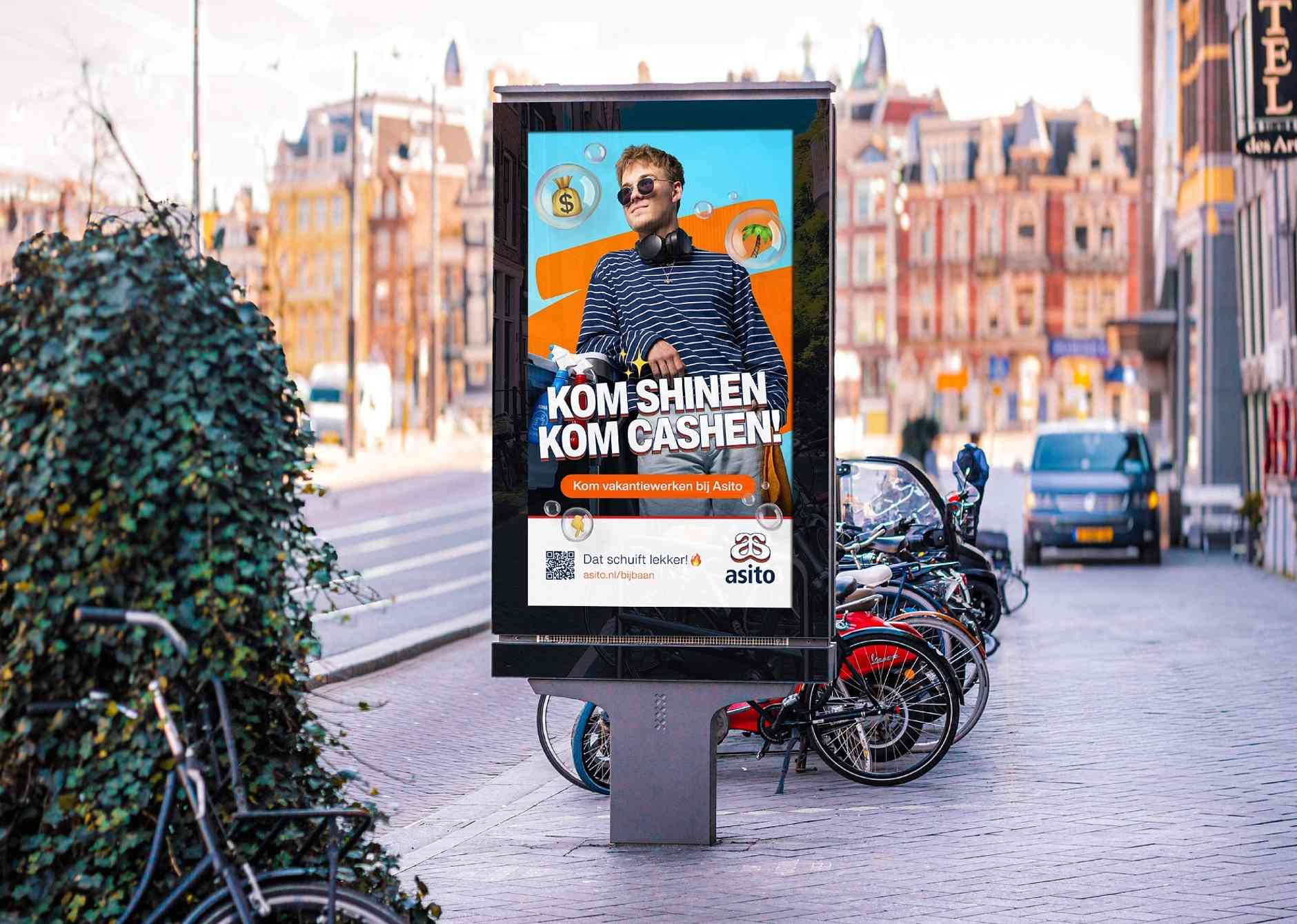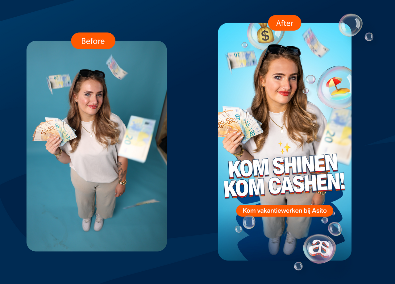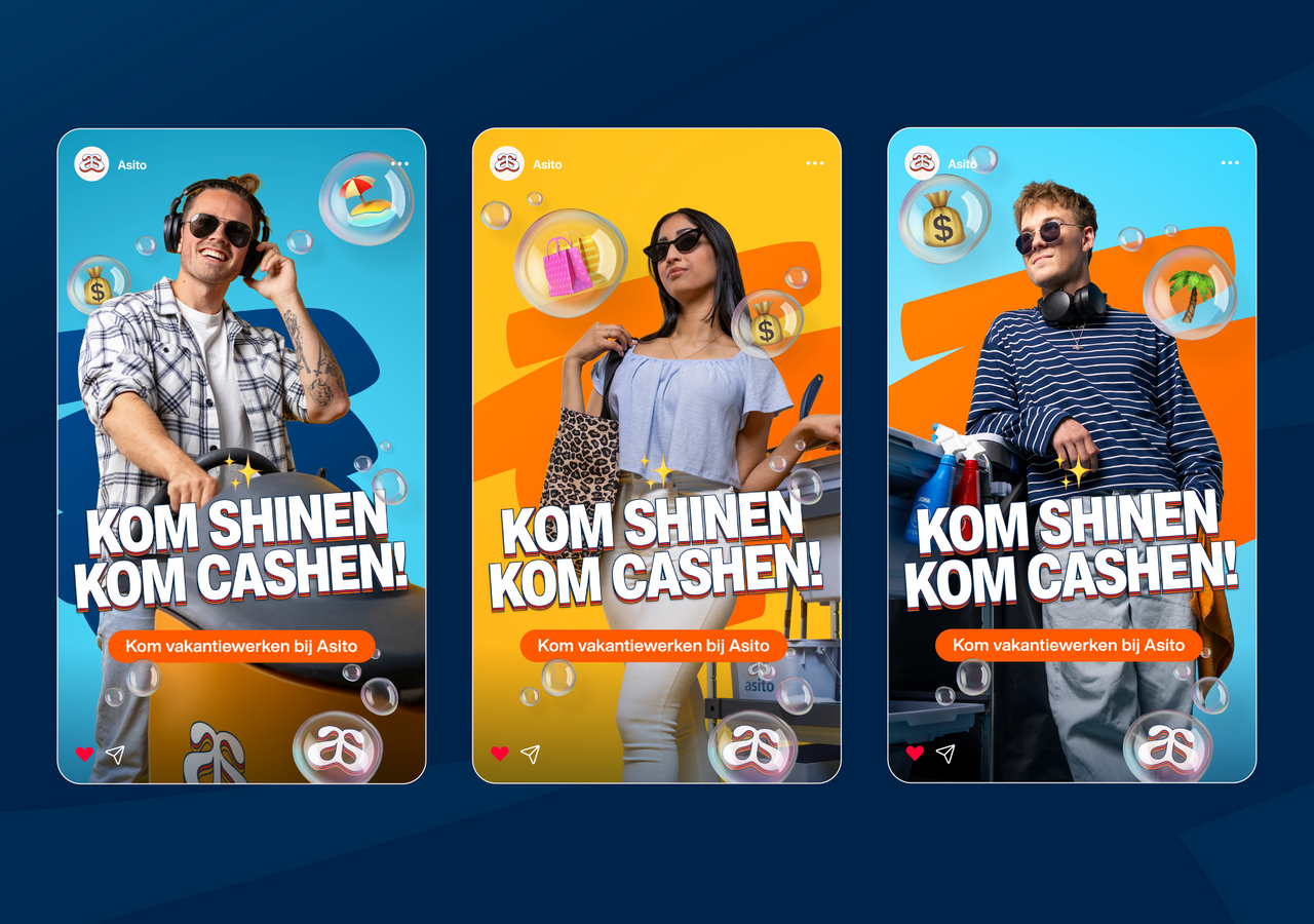 Hoe spreekt Asito Gen Z’ers aan om in de zomer te gaan werken? Een doelgroep met een korte spanningsboog. Jongeren die moeiteloos door advertenties scrollen. Met welke communicatie trigger je ze? En hoe zorg je ervoor dat dit past binnen de bestaande merkbeleving van Asito?